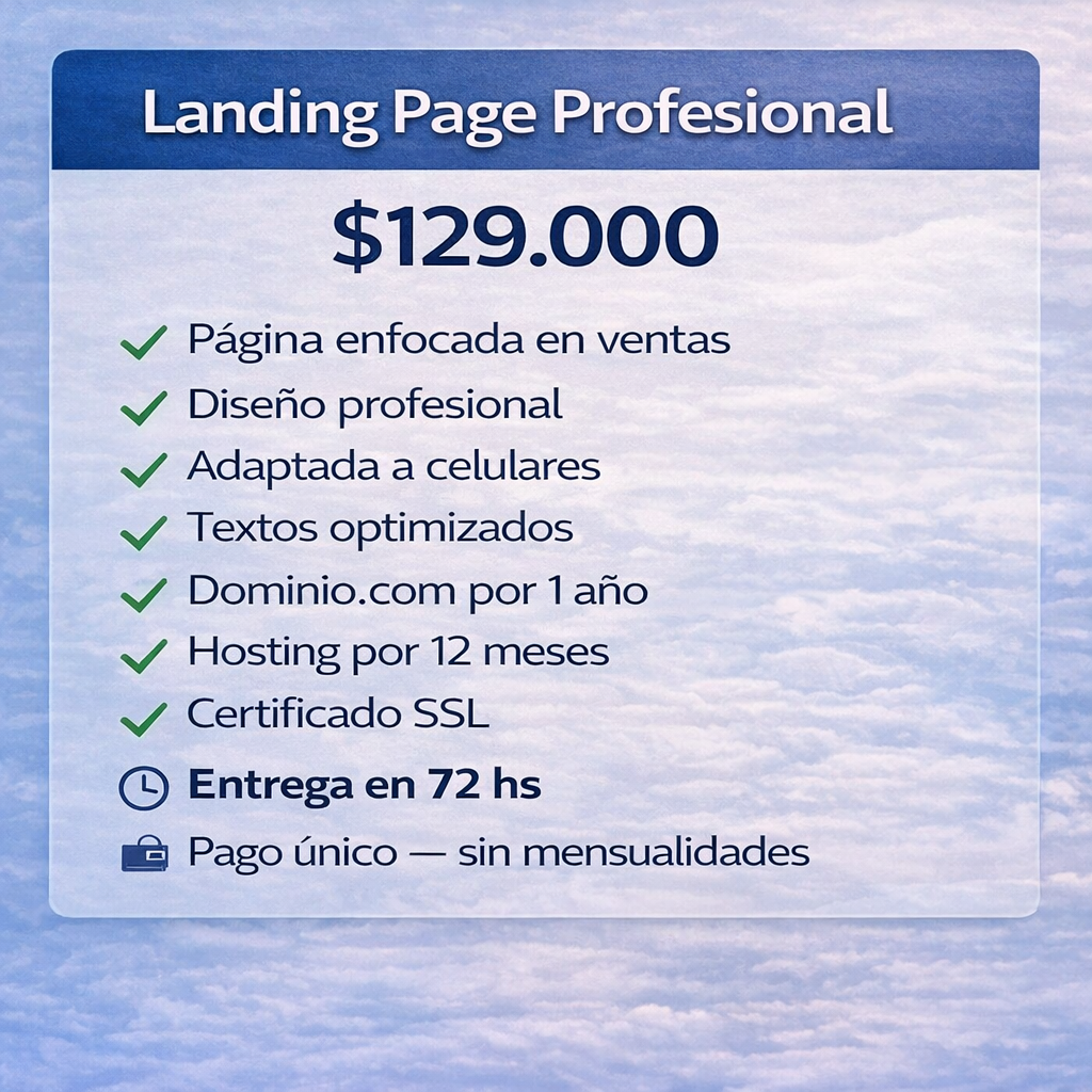 Landing Page $129.000 50%off antes $200mil entrega en 72hs.