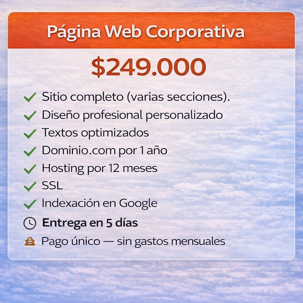 Pagina web dedicada $249.000 50%off antes $400mil entrega en 5 Dias.